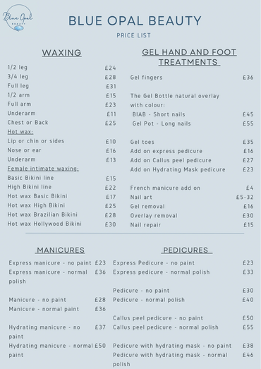 Our 1 hour hydrating mask pedicure includes: file, cuticle work, scrub, foot rasp, massage, hydrating mask, normal nail varnish and cuticle oil.